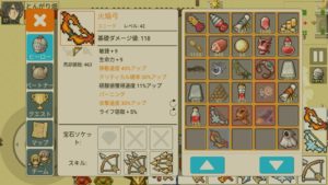 スキルは、基本攻撃、半円くらいに一気に撃つスキル、放射状に連射するスキルを付けました。