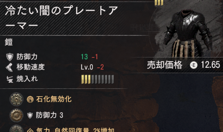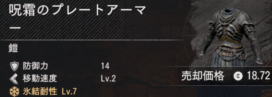 後は氷耐性Lv15は必須。じゃないと凍る。呪霜シリーズを装備しておくことと、食べ物氷耐性1分あればLv15にはなれる。氷耐性アビスギア装備しても良いかもだけど、どっちでも。地味に石化無効が今後役立ちそうで大事かなって思った。